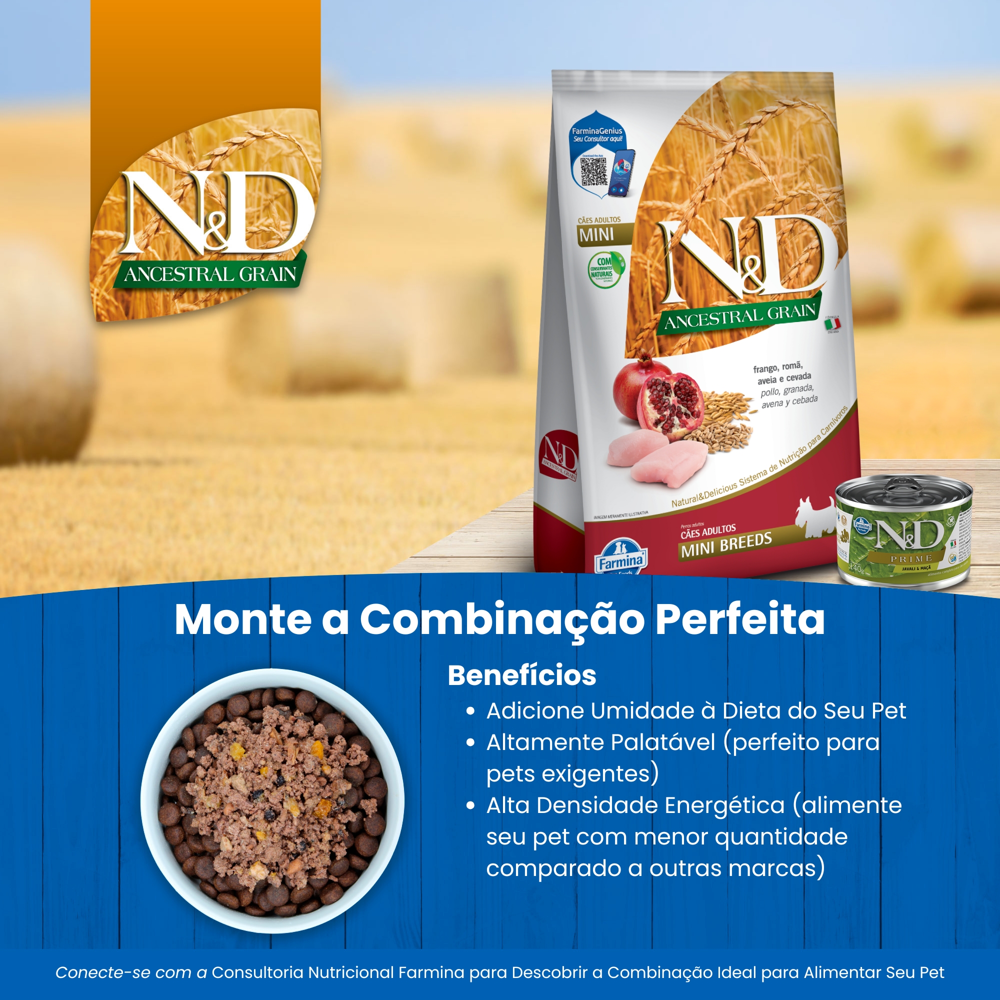N&D Ancestral para Cães Adultos de Raças Mini e Pequenas Sabor Frango, Romã, Aveia e Cevada 10,1Kg