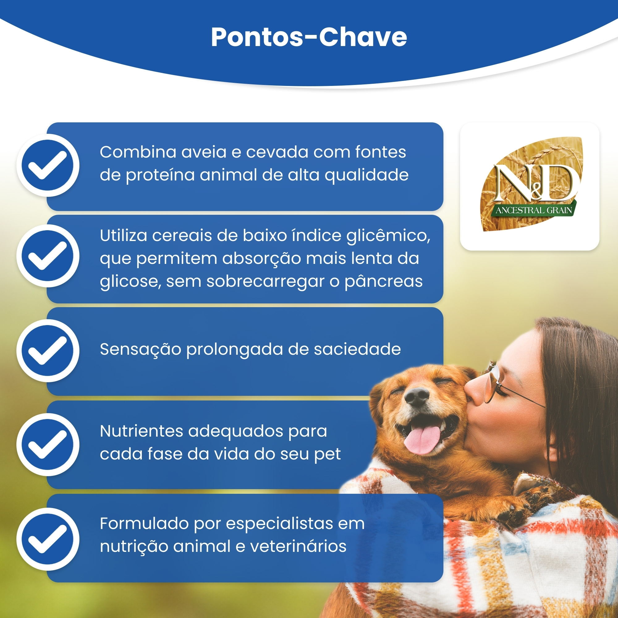 N&D Ancestral para Cães Idosos de Raças Mini e Pequenas Sabor Frango, Romã, Aveia e Cevada 2,5Kg