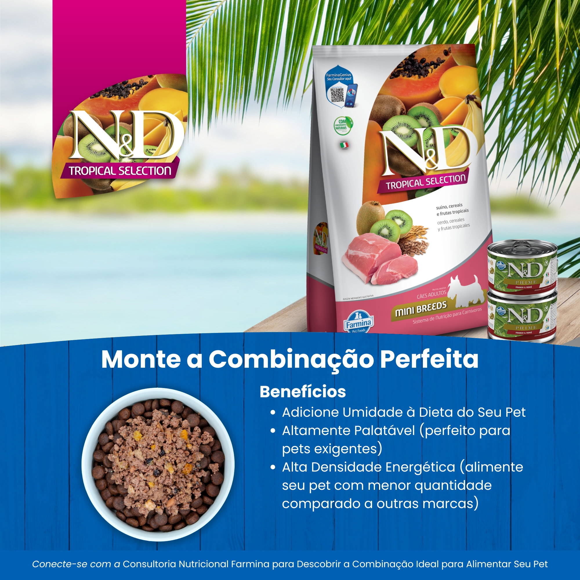 N&D Tropical para Cães Adultos de Raças Mini e Pequenas Sabor Suíno, Cereais e Frutas Tropicais 2,5Kg