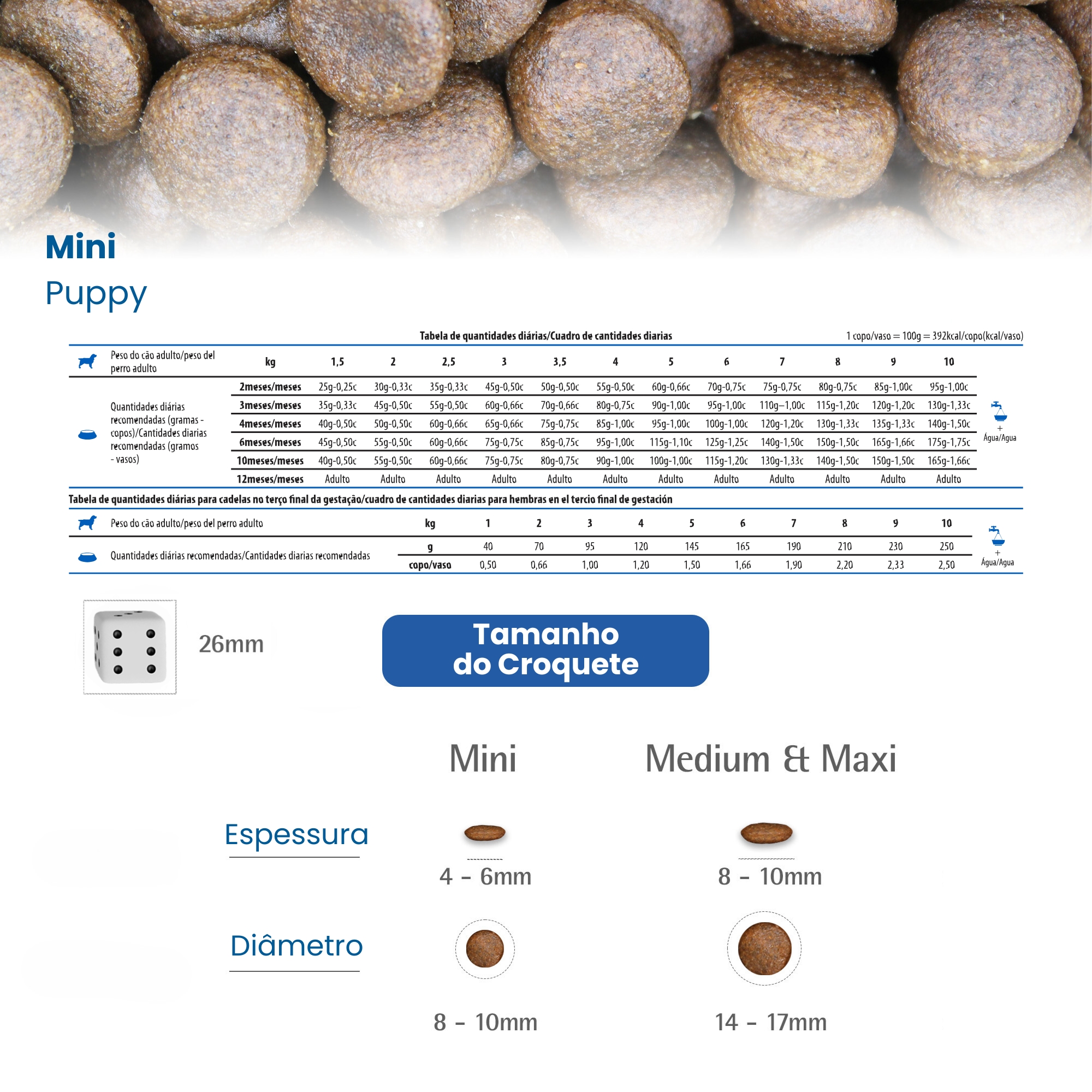 COMPOSIÇÃO BÁSICA: Cordeiro (carne de ovino, farinha de carne e osso de ovino – mín. 3,5%), cereais e frutas (aveia, grãos de sorgo, cevada em grãos, banana desidratada, mamão desidratado, kiwi desidratado, manga desidratada – mín. 35%), farinha de vísceras de aves, farinha de torresmo, ovo em pó, quirera de arroz, farelo de trigo, farinha de peixe, óleo de frango, óleo de peixe, polpa de beterraba, levedura seca de cervejaria, cenoura desidratada, aditivos prebióticos (FOS e MOS), DL-metionina, taurina, L-carnitina, sulfato de condroitina, sulfato de glicosamina, aditivos adsorventes (extrato de yucca e zeolita), hidrolisado de fígado de aves e suínos, vitaminas (A, D3, E, B1, B2, B5, B6, B12, C, biotina, niacina, ácido fólico, cloreto de colina), cloreto de sódio, cloreto de potássio, ferro aminoácido quelato, cobre aminoácido quelato, zinco aminoácido quelato, manganês aminoácido quelato, proteinato de selênio, iodato de cálcio, propionato de cálcio, concentrado de tocoferóis. Eventuais substitutivos: proteína hidrolisada de peixe, proteína hidrolisada de frango.