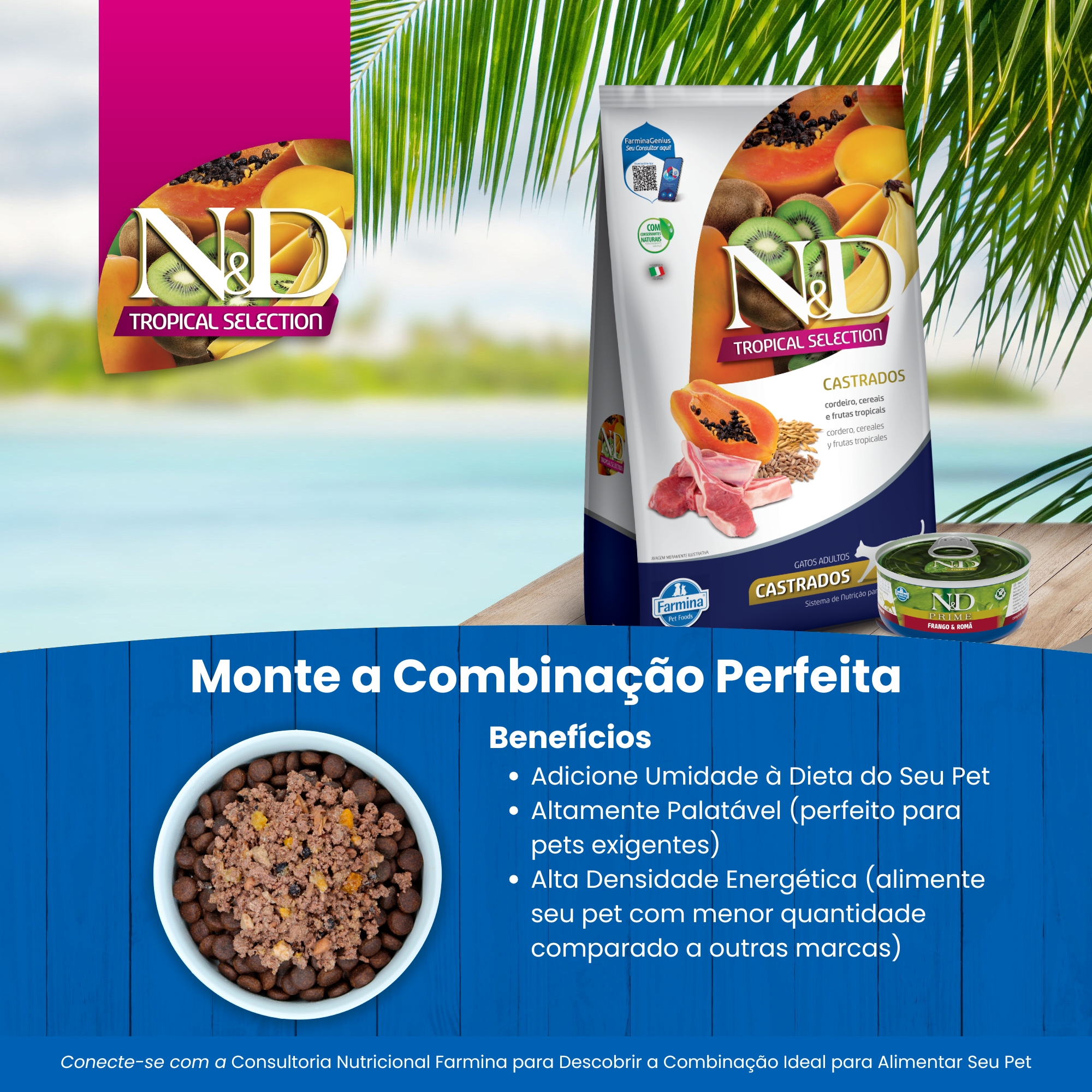 N&D Tropical para Gatos Adultos Castrados de Todas as Raças Sabor Cordeiro, Cereais e Frutas Tropicais 1,5Kg