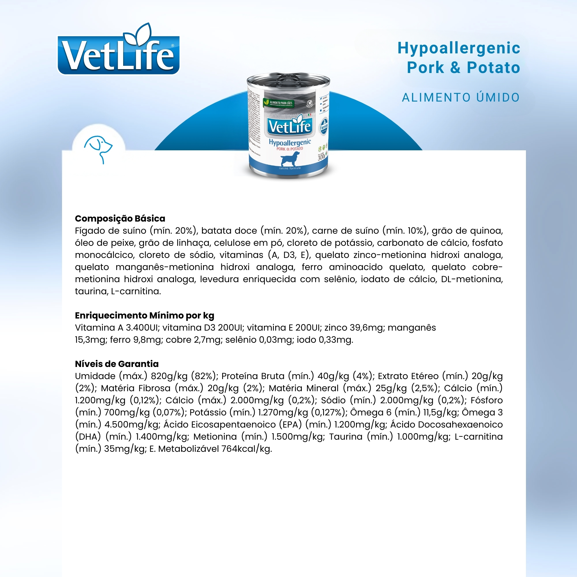 COMPOSIÇÃO BÁSICA: fígado de suíno (mín. 20%), batata doce (mín. 20%), carne de suíno (mín. 10%), grão de quinoa, óleo de peixe, grão de linhaça, celulose em pó, cloreto de potássio, carbonato de cálcio, fosfato monocálcico, cloreto de sódio, vitaminas (A, D3, E), quelato zinco-metionina hidroxi analoga, quelato manganês-metionina hidroxi analoga, ferro aminoacido quelato, quelato cobre-metionina hidroxi analoga, levedura enriquecida com selênio, iodato de cálcio, DL-metionina, taurina, L-carnitina.