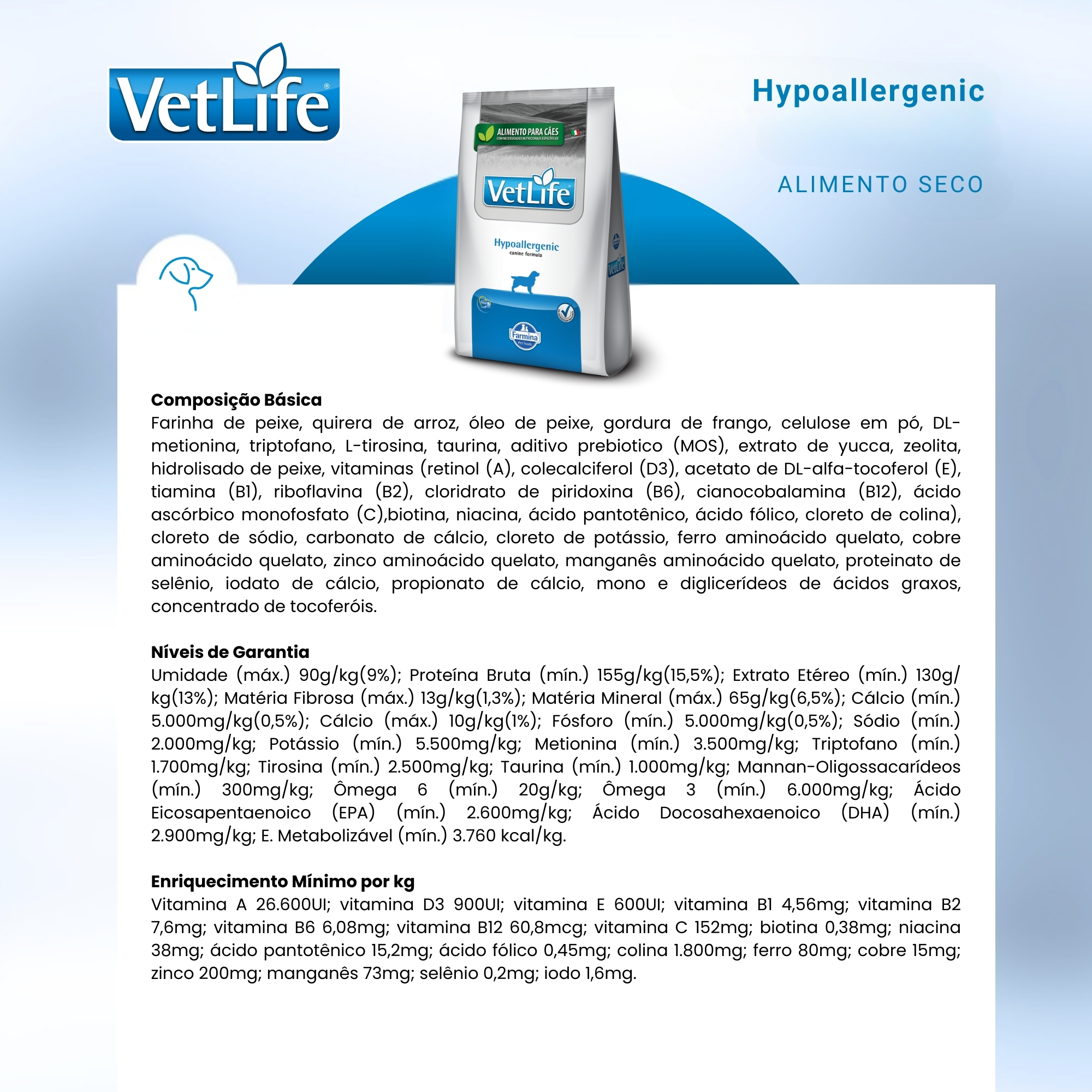 Vet Life Hypoallergenic para Cães Adultos de Todas as Raças 10,1Kg