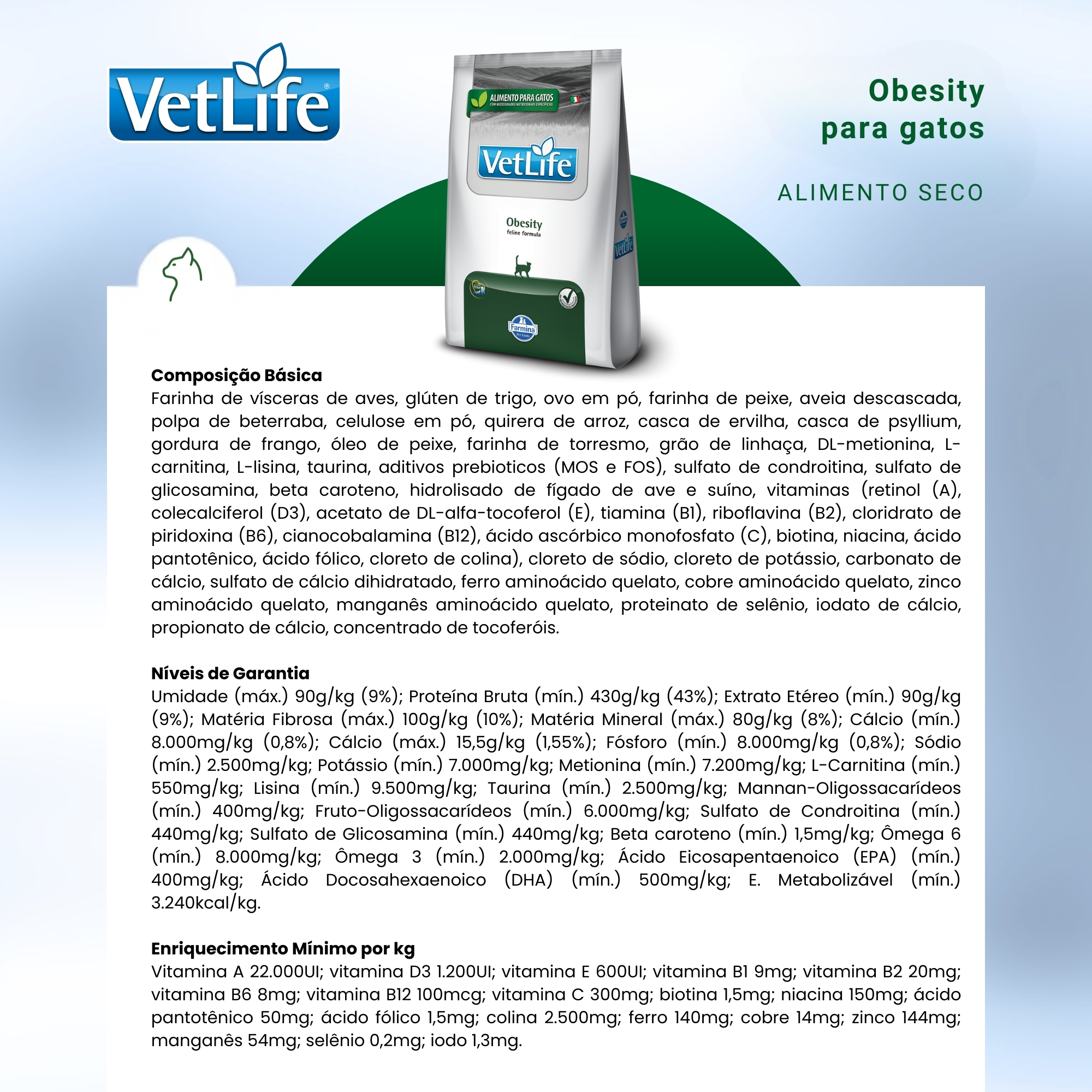 Vet Life Obesity para Gatos Adultos de Todas as Raças 2Kg