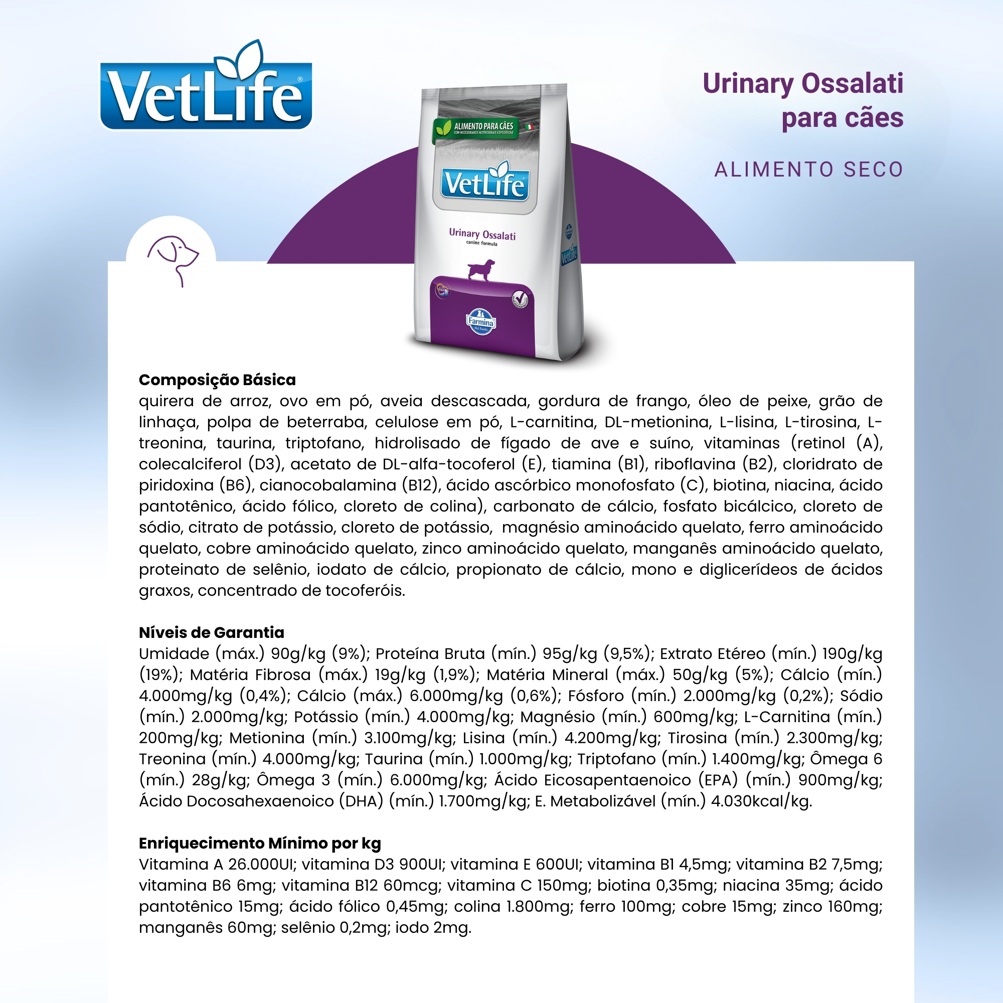 Vet Life Urinary Ossalati para Cães Adultos de Todas as Raças 10,1Kg