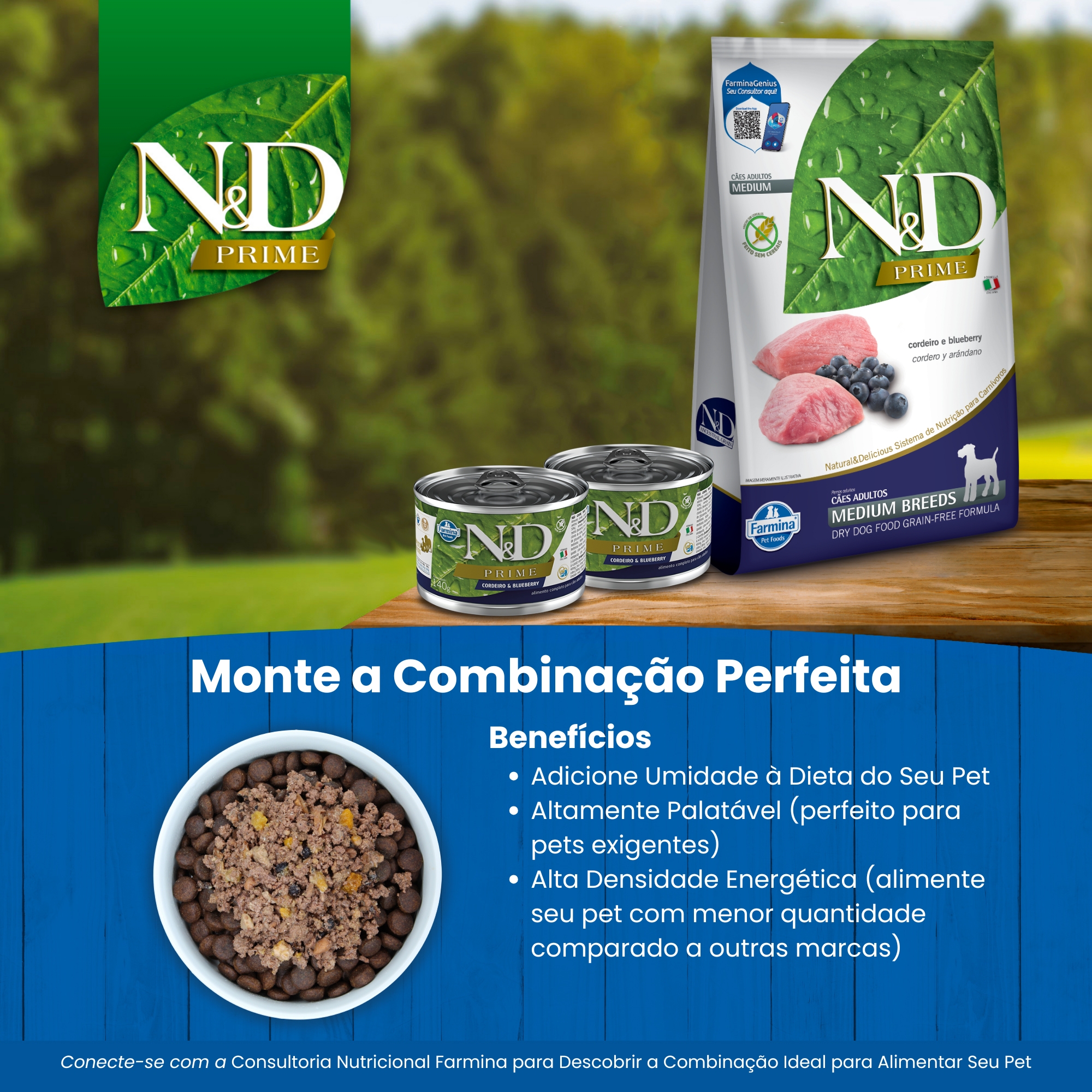 N&D Prime para Cães Adultos de Raças Médias Sabor Cordeiro e Blueberry 10,1Kg