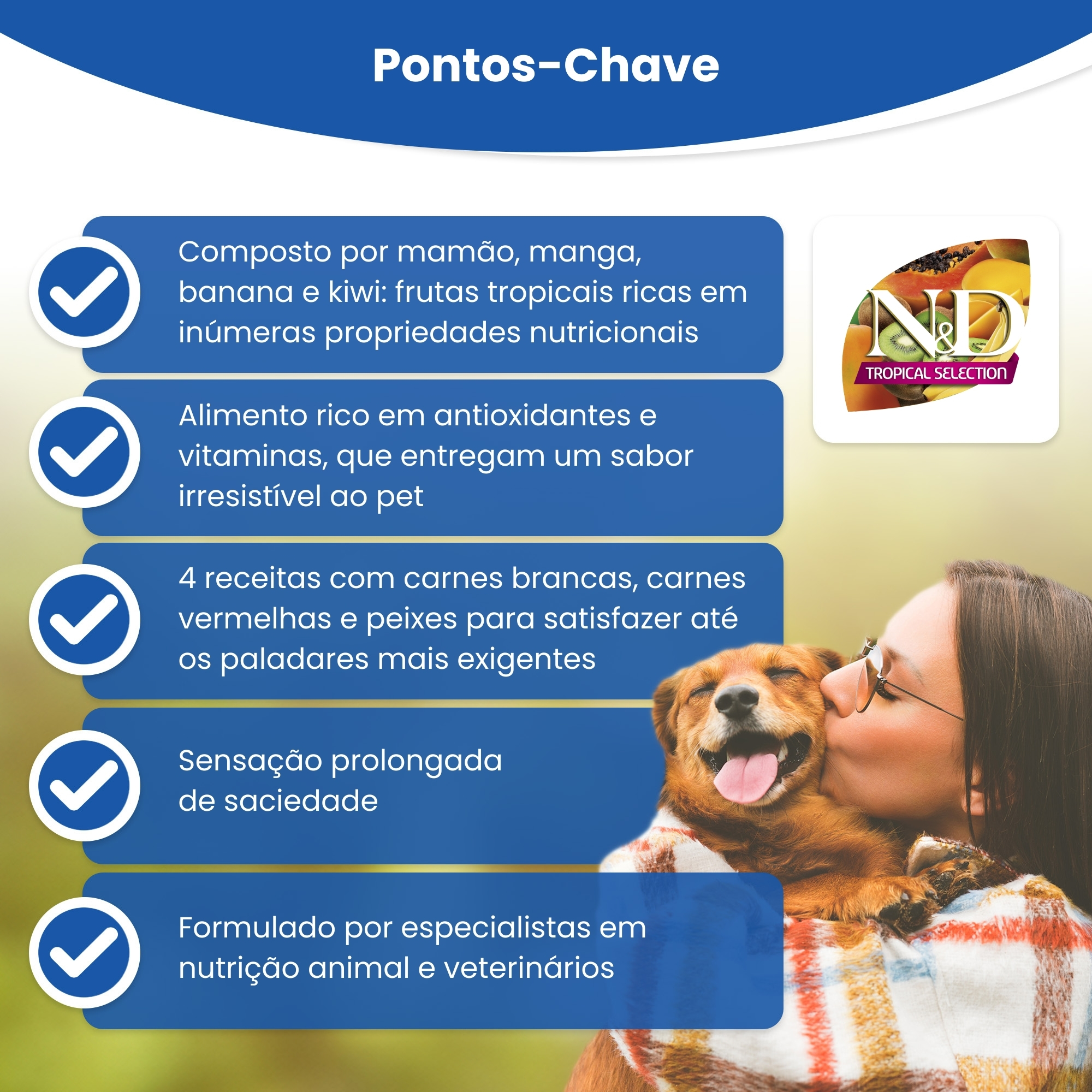 N&D Tropical para Cães Adultos de Raças Mini e Pequenas Sabor Suíno, Cereais e Frutas Tropicais 2,5Kg