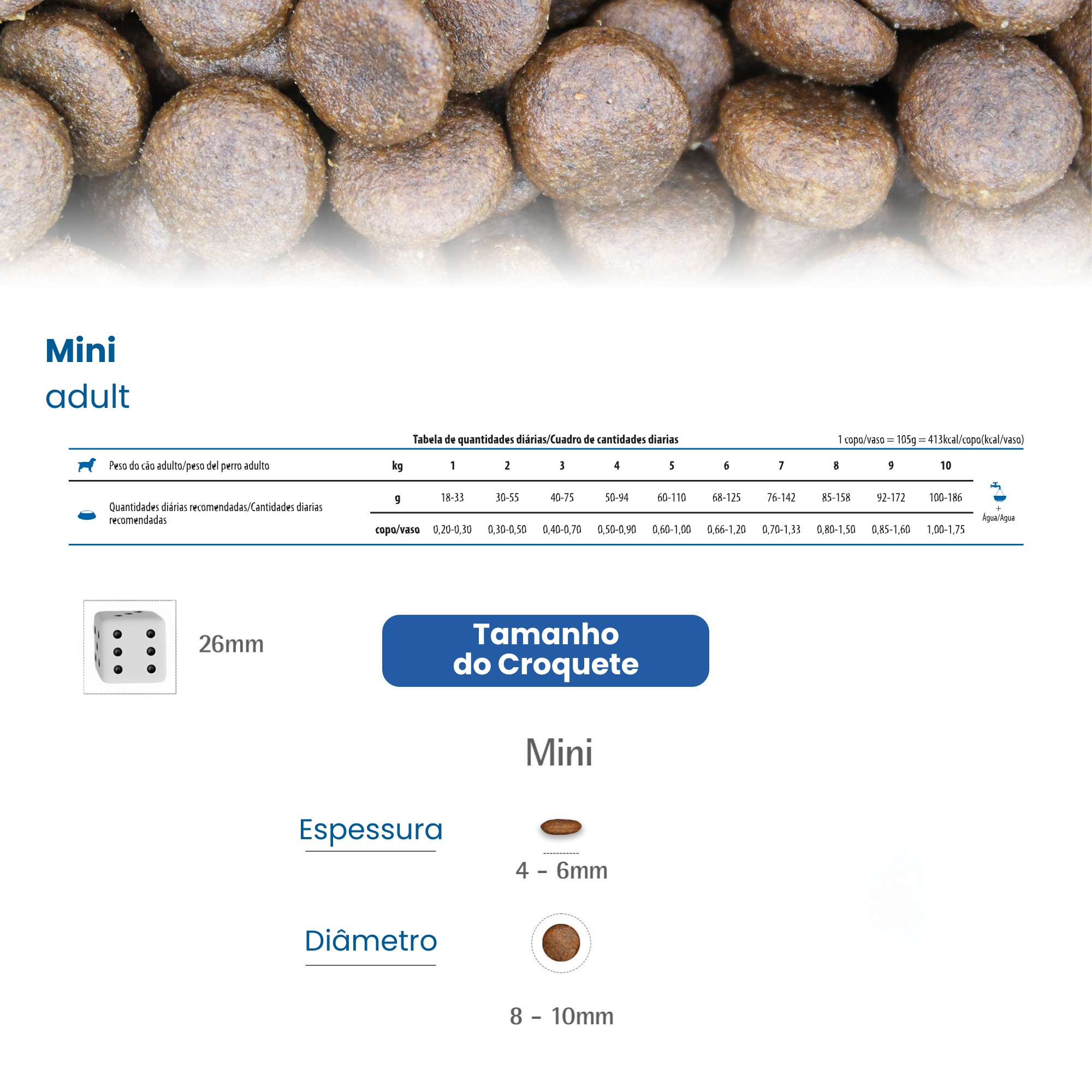 COMPOSIÇÃO BÁSICA: carne de merluza (mín. 3%), proteína hidrolisada de peixe, farinha de peixe, amido de batata, batata desidratada, amido de mandioca, óleo de peixe, gordura suína, óleo de frango, casca de ervilha, alfafa desidratada, celulose em pó, semente de linhaça, semente de psyllium, levedura seca de cervejaria, biomassa de microalgas desidratada (Spirulina spp.) (mín. 0,5%), espinafre desidratado, erva doce desidratada (mín. 0,15%), extrato de aloe vera, camomila, beta caroteno, aditivos prebióticos (FOS e MOS), DL-metionina, taurina, L-carnitina, sulfato de condroitina, sulfato de glicosamina, aditivos adsorventes (extrato de yucca e zeolita), hidrolisado de peixe, vitaminas (A, D3, E, B1, B2, B5, B6, B12, C, biotina, niacina, ácido fólico, cloreto de colina), carbonato de cálcio, cloreto de sódio, cloreto de potássio, ferro aminoácido quelato, cobre aminoácido quelato, zinco aminoácido quelato, manganês aminoácido quelato, proteinato de selênio, iodato de cálcio, propionato de cálcio, concentrado de tocoferóis.